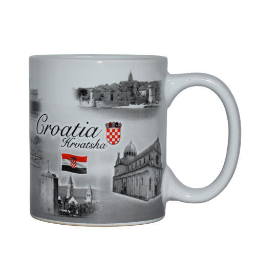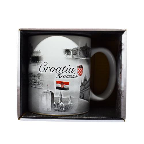 Šalica s crno-bijelim fotografijama znamenitosti Hrvatske. Elegantna i klasična, pogodna za svaki dan ili kao suvenir.
