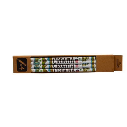 Set od četiri drvene olovke s motivima Hrvatske. Idealan suvenir ili poklon za svakodnevnu upotrebu.